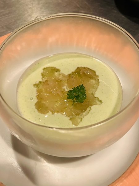 桜の冷製スープがはじまりました。4月中旬ころまでの、ご提供です。是非、ご賞味ください。